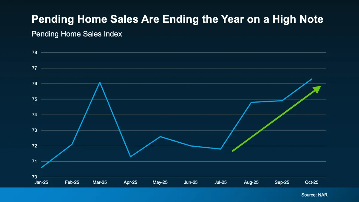 Pending home sales are a leading indicator of where actual sales are going. If more homes are going under contract, it’s a good sign more homes will actually close over the next two months, ultimately boosting sales. This could be part of why experts project home sales will inch higher in 2026 than they were in 2025 or in 2024.